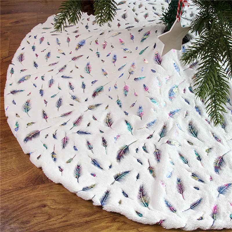Плюшевая юбка с надписью "Merry Christmas", фартук с бронзовыми перьями, декоративное украшение для рождественской елки, юбка для елки, новогодний и Новогодний Декор для дома