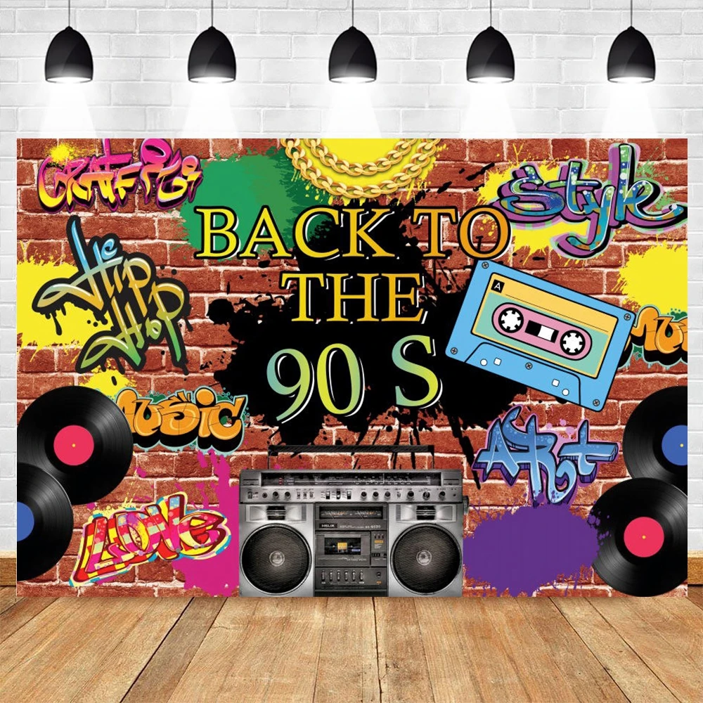 Фон для вечеринки в стиле 90-х годов Yeele, светящийся неоновый фон в стиле граффити в стиле хип-поп с музыкой в стиле 90-х годов, баннер для вечевечерние, блестящее украшение