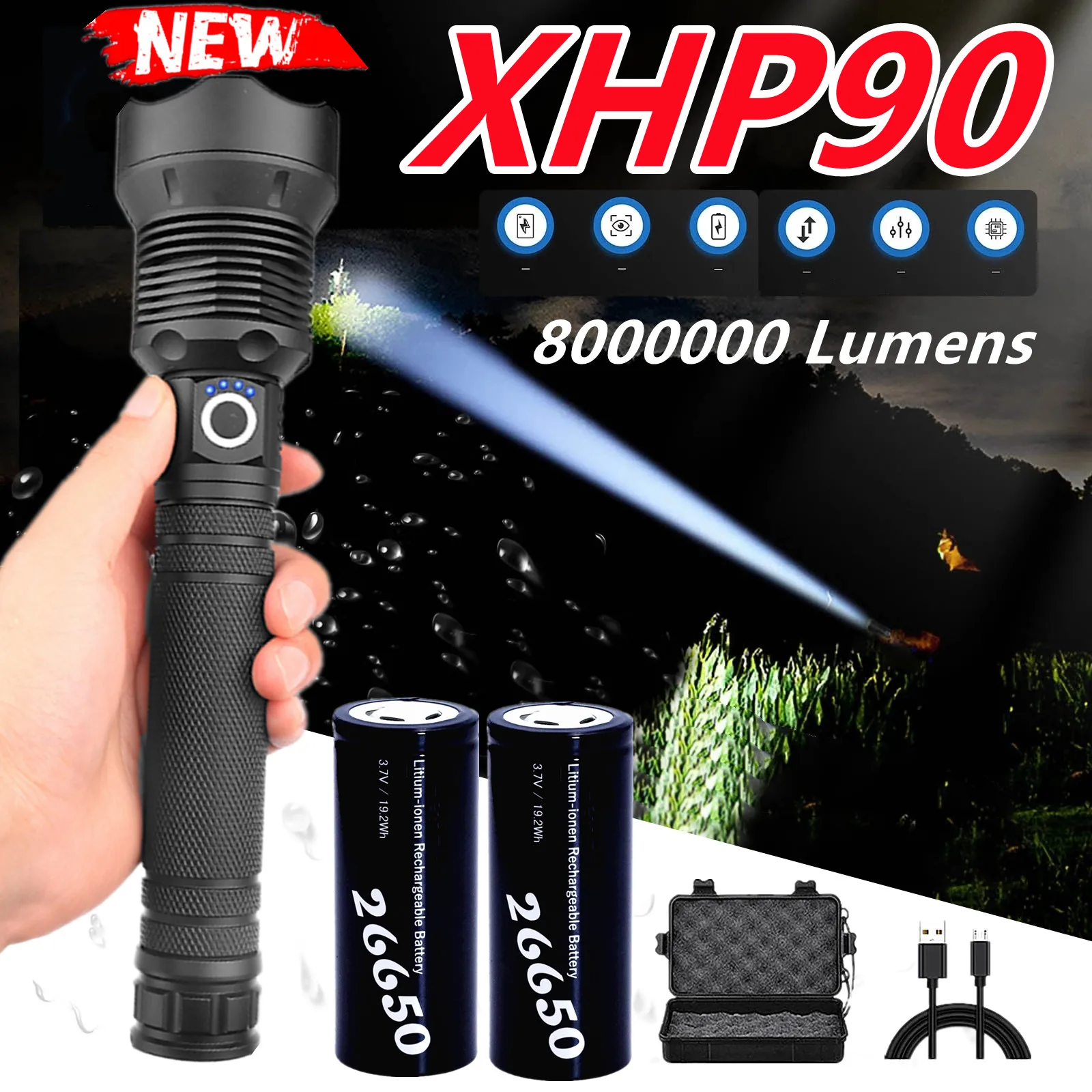 Фонарь XHP90, 800000 люмен, usb, 18650, 26650, для охоты