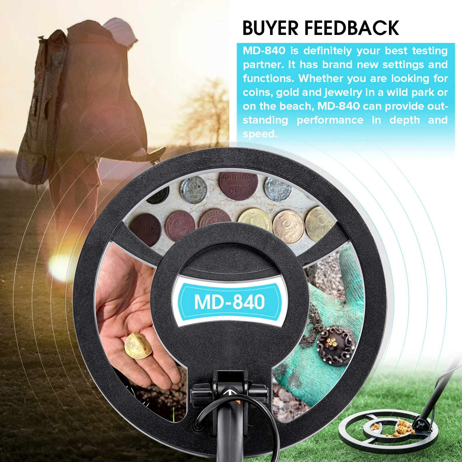Профессиональный металлоискатель MD840, водонепроницаемый подземный золотоискатель для охотников за сокровищами