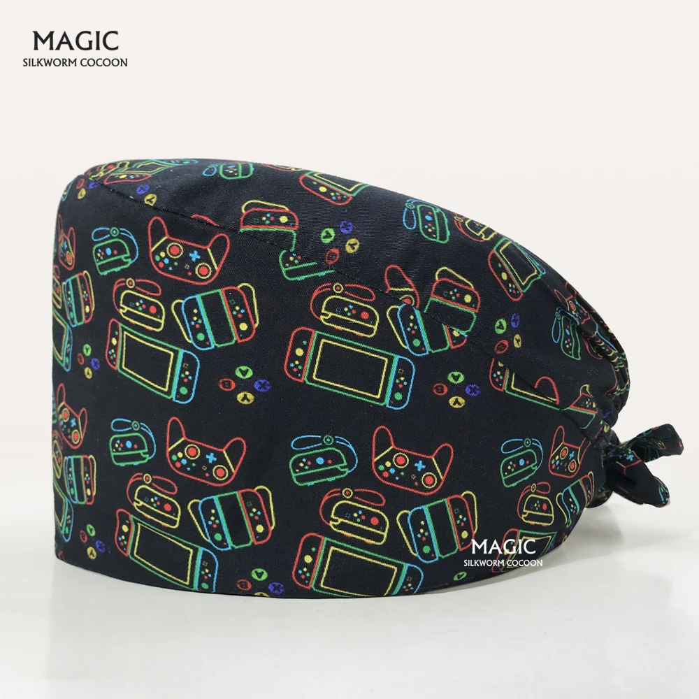 Шапка-медицинские шапочки для косметолога, мультяшный матовый принт...