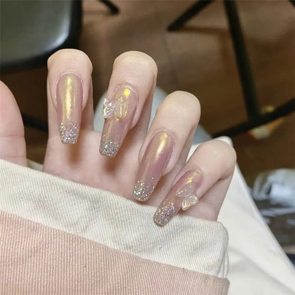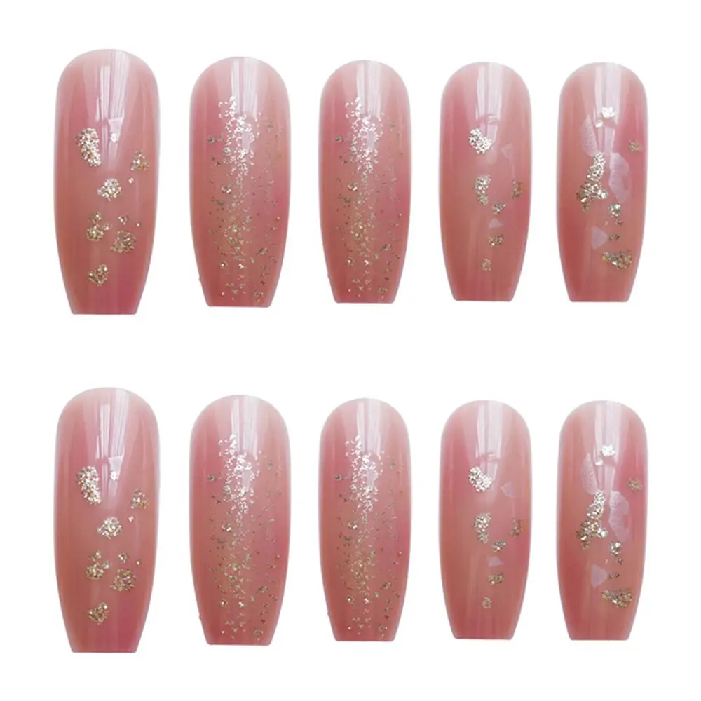 Накладные ногти балерины, 24 шт.кор., съемные, из золотой фольги, длинные, накладные ногти пудра для ногтей с блестками с клеем, полное покрытие