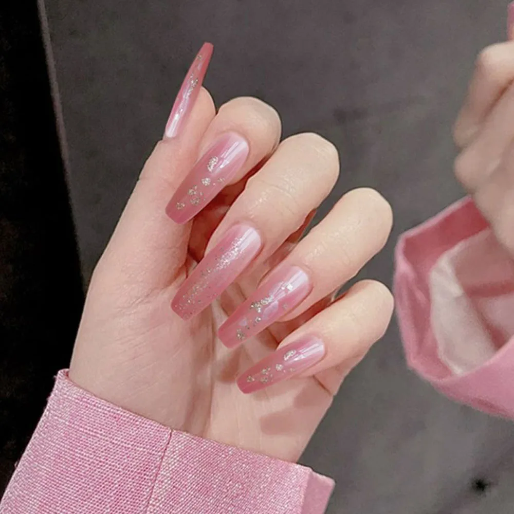 24 шт./кор. Съемная Золотая фольга длинный гроб накладные пудра для ногтей с блестками балерина накладные ногти полное покрытие ногтей типсы с клеем