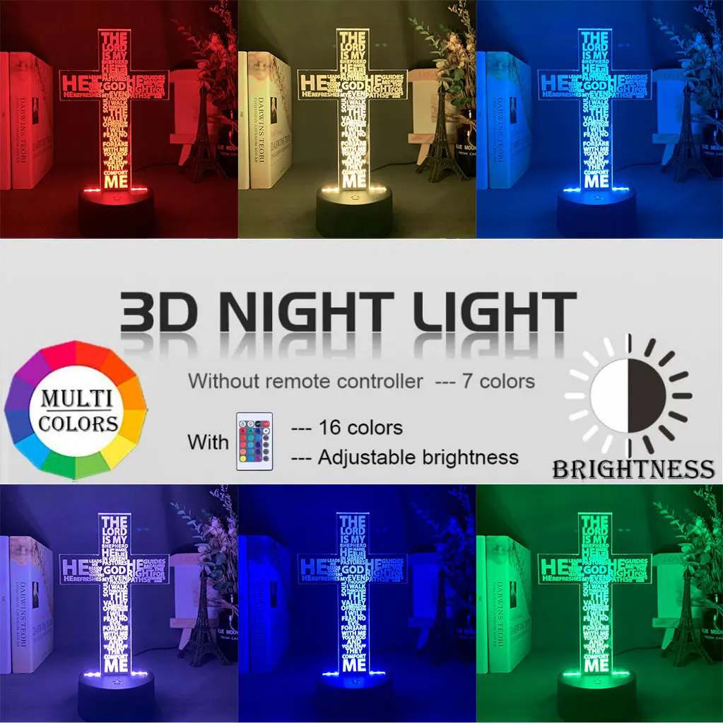 Светильник-ночник со светодиодной подсветкой в виде Креста Иисуса, священного псала, Библии, подарок для христиан, спальни, настольная лампа, декор с церковью