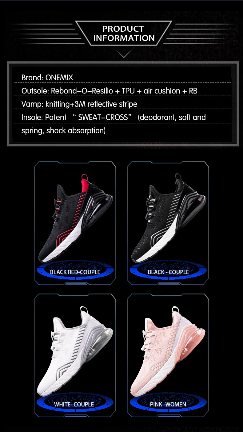 Бренд: onemix подошва: rebond o-restoro + TPU + Воздушная подушка + RB верхняя часть: Вязание + 3 М светоотражающая лента Стелька: запатентованный «Сладкий крест» (дезодорирование, мягкость, эластичность и амортизация)