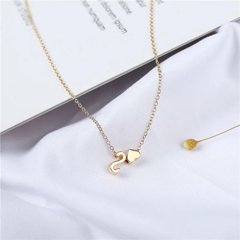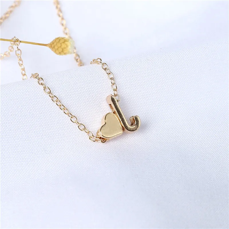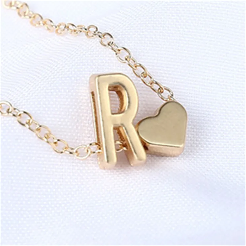 Модное простое ожерелье в форме сердца с 26 исходными буквами, маленькое изящное колье с одним именем, пара, дружба, цепочка для ключицы, колье, ювелирное изделие