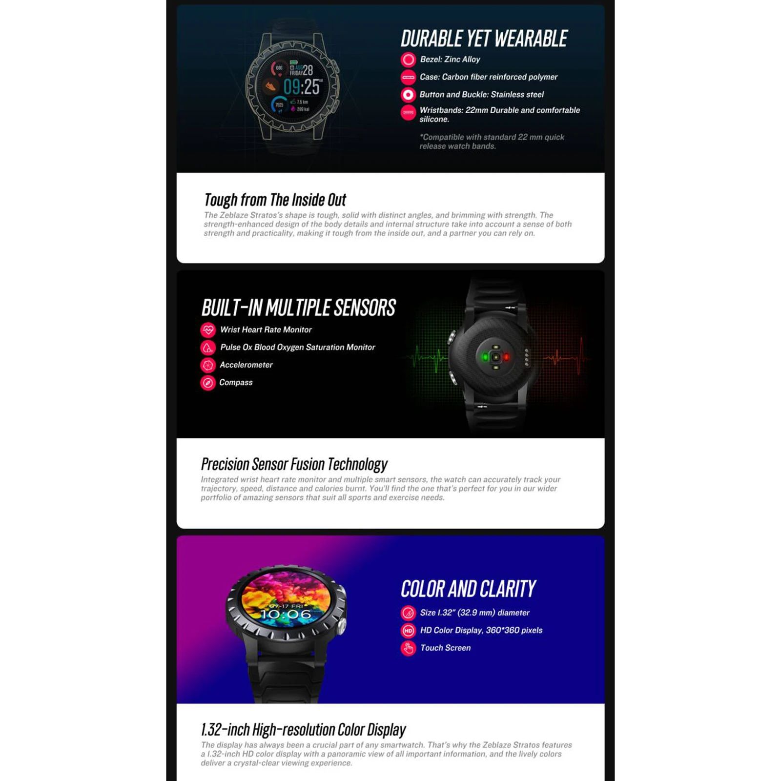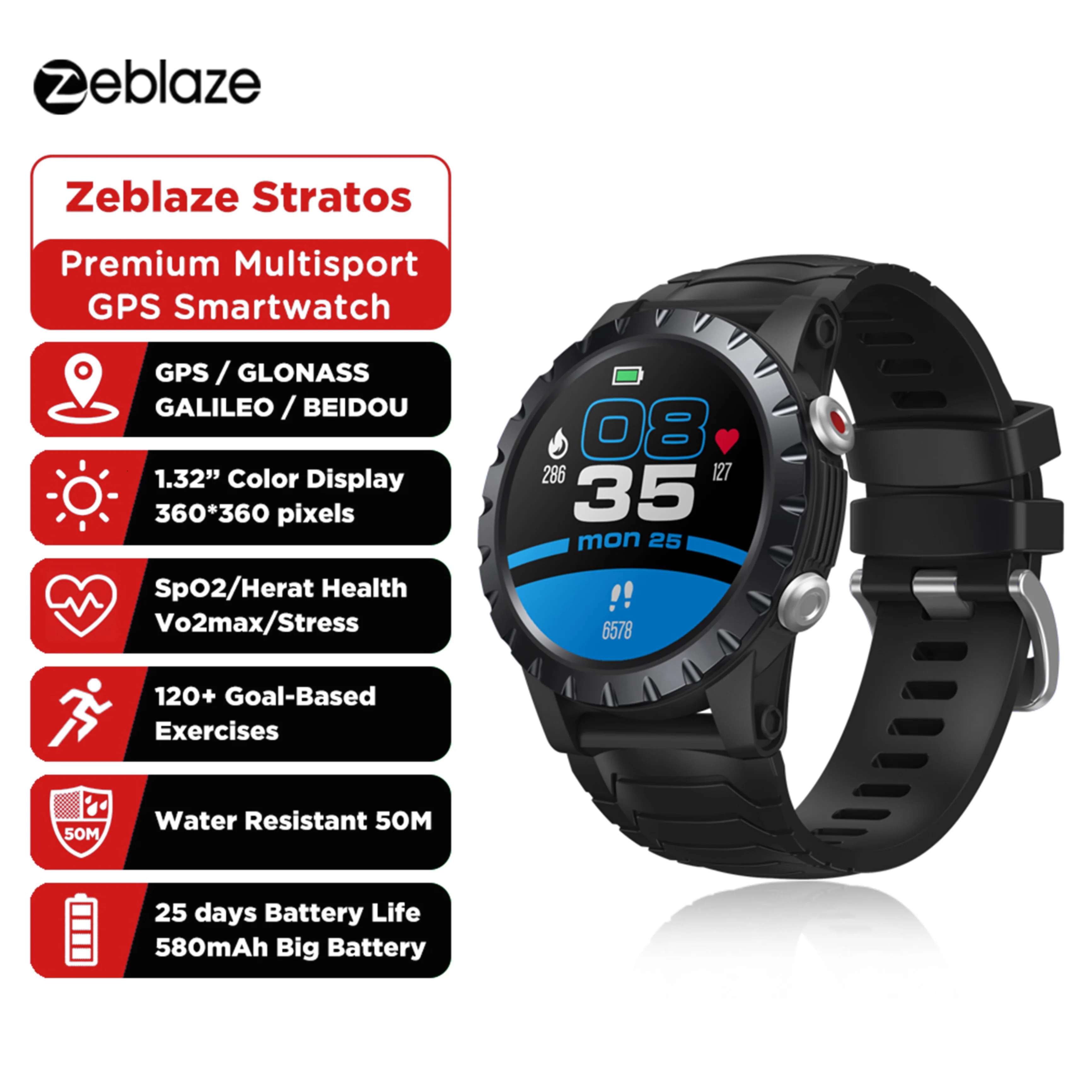 Новинка 2021 Zeblaze Stratos спортивные умные часы gps GLONASS GALILEO пульсометр SpO2 VO2max антистресс 25 дней работы от батареи WR 5 ATM