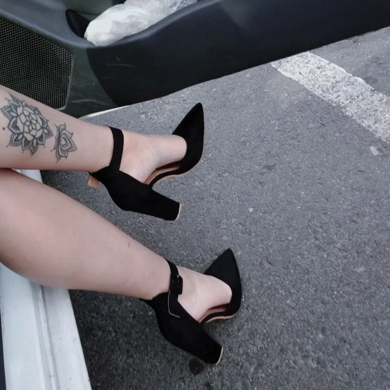 Туфли женские на высоком каблуке, заостренный носок, ремешок на щик...