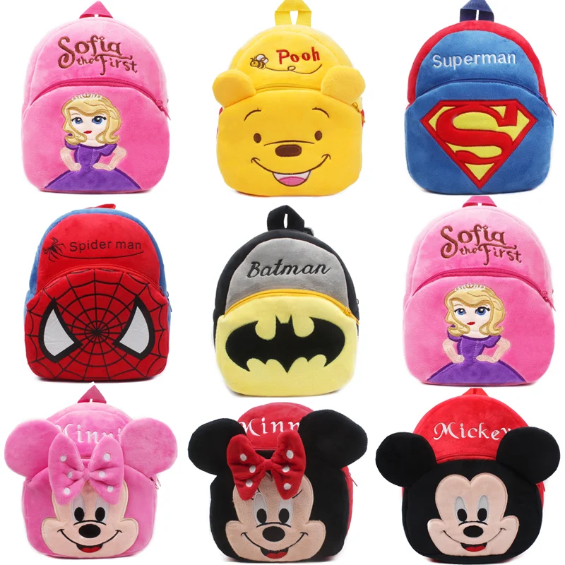 Плюшевая сумка 23 см из мультфильма Disney, рюкзак с Микки Винни-пухом, Мстители, Человек-паук, детский садовый и школьный портфель