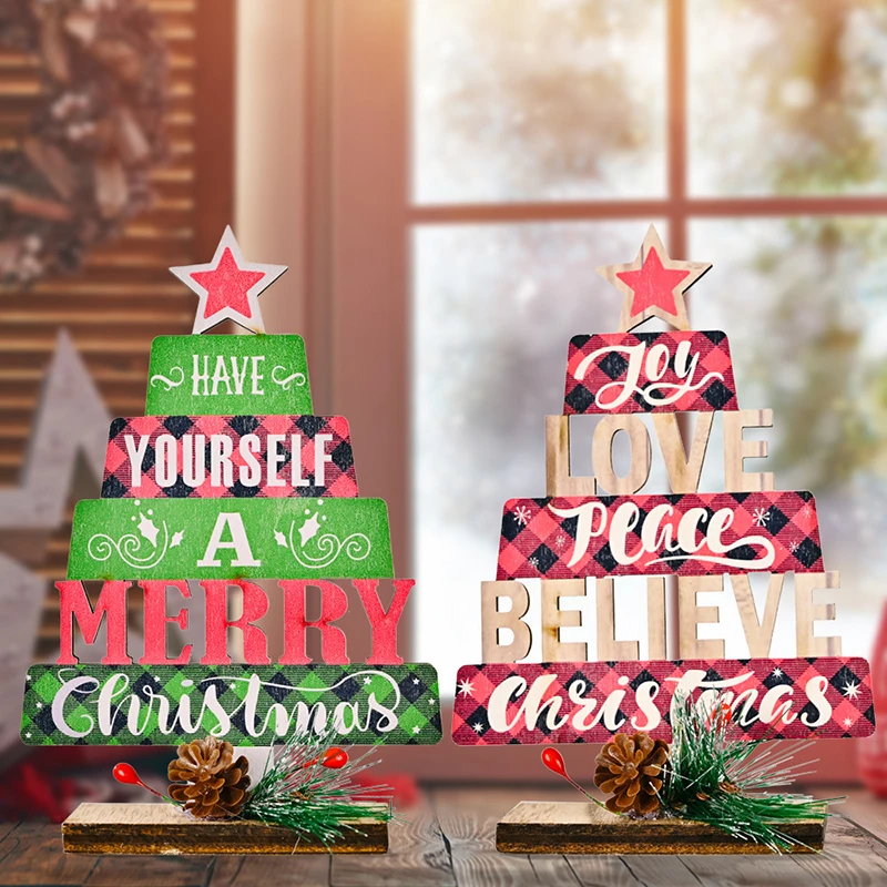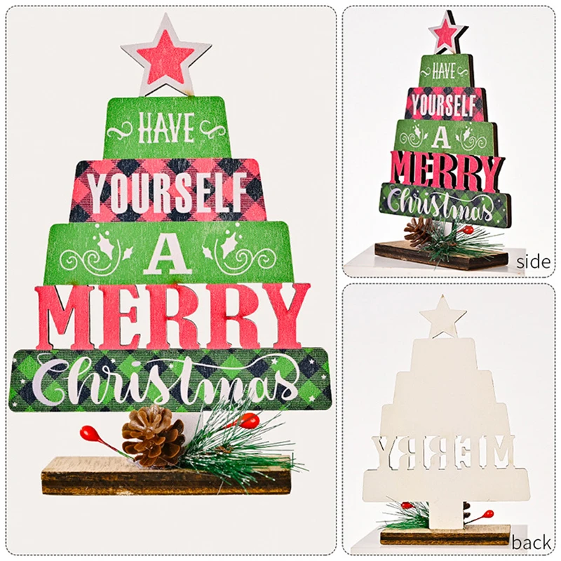 Деревянная новогодняя елка Настольные украшения Новый год 2022 Рождество 2021 Украшения для дома Рождественские подарки Настольные украшения