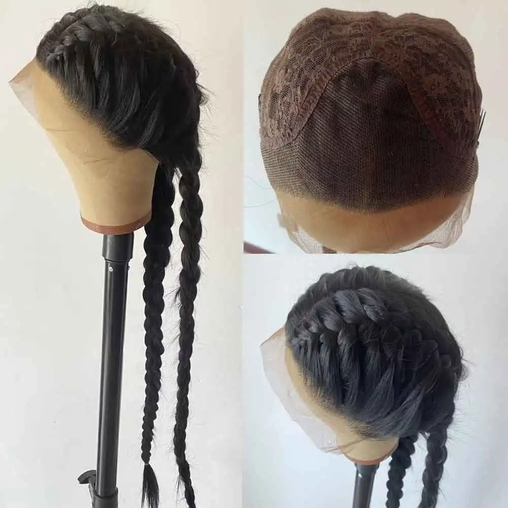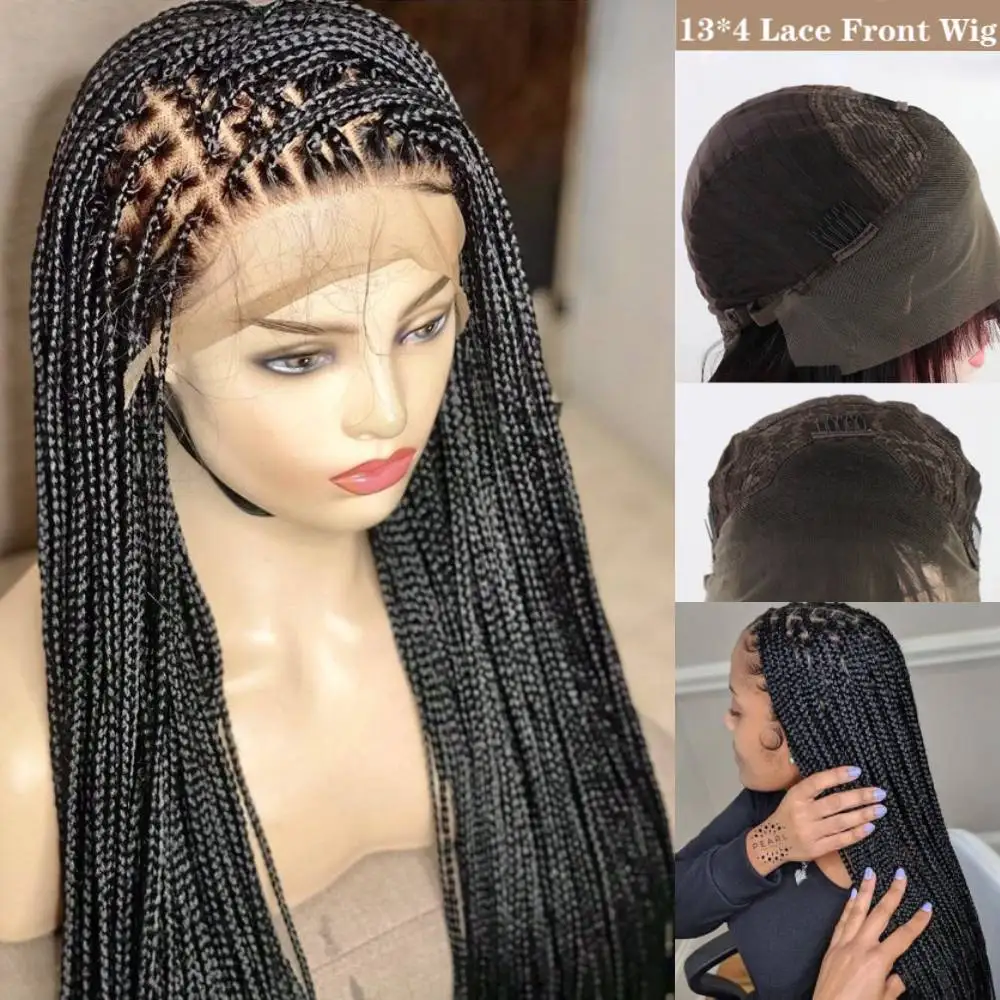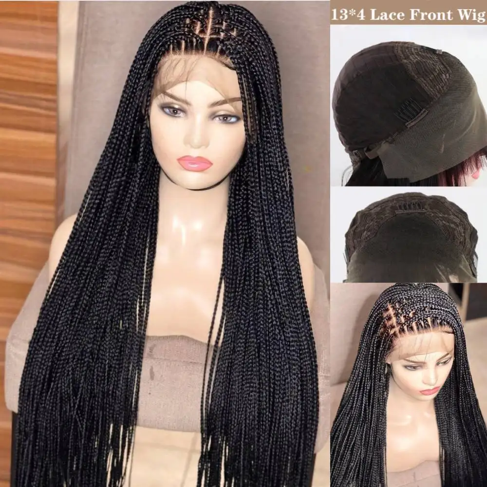 13*4 парики в коробке, плетеные на сетке спереди, ручная работа, микро плетеные прямые синтетические волосы, длинные плетеные волосы