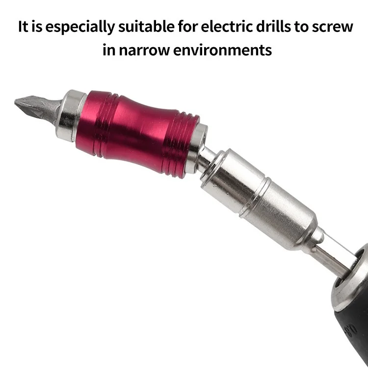 Особенности:Держатель кольцевого сверла для отвертки:Спроектирован с помощью воротника, позволяющего toflex до 20 обезжиривания для прямой или угловой езды. Эффективно предотвращает поломки.Больше никаких ограниченийИдеально вращается до подходящих пространств и углов.Высококачественный материалИзготовлен из инженерной стали для максимальной прочности и гибкости. Квалифицировано для беспроводных ударных инструментов до 2000 дюймов/фунтов крутящего момента.Магнитный замокРазработано с сильным постоянным неодимовым магнитом крепления удерживания-минимизирует капли и уменьшает колебания! Просто сдвиньте рукав вперед, чтобы выпустить бит.УниверсальныйПредназначен для использования в ударных драйверах и гаечных ключах. Используется для расширения всех видов отверток, сверл, головки партии, головки отвертки и т. Д.Характеристики:Размер хвостовика: 1/4"Цвет: серебристый/черный/красныйПосылка: 1 держатель сверла