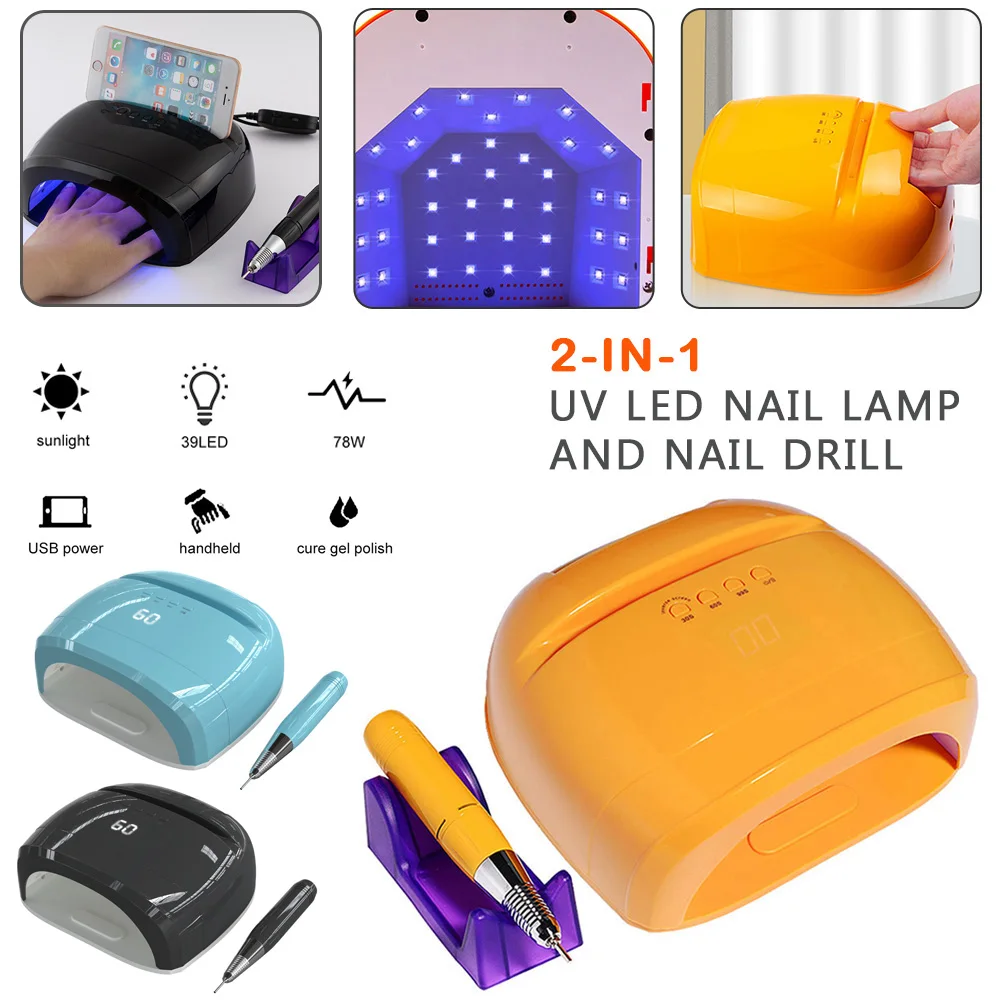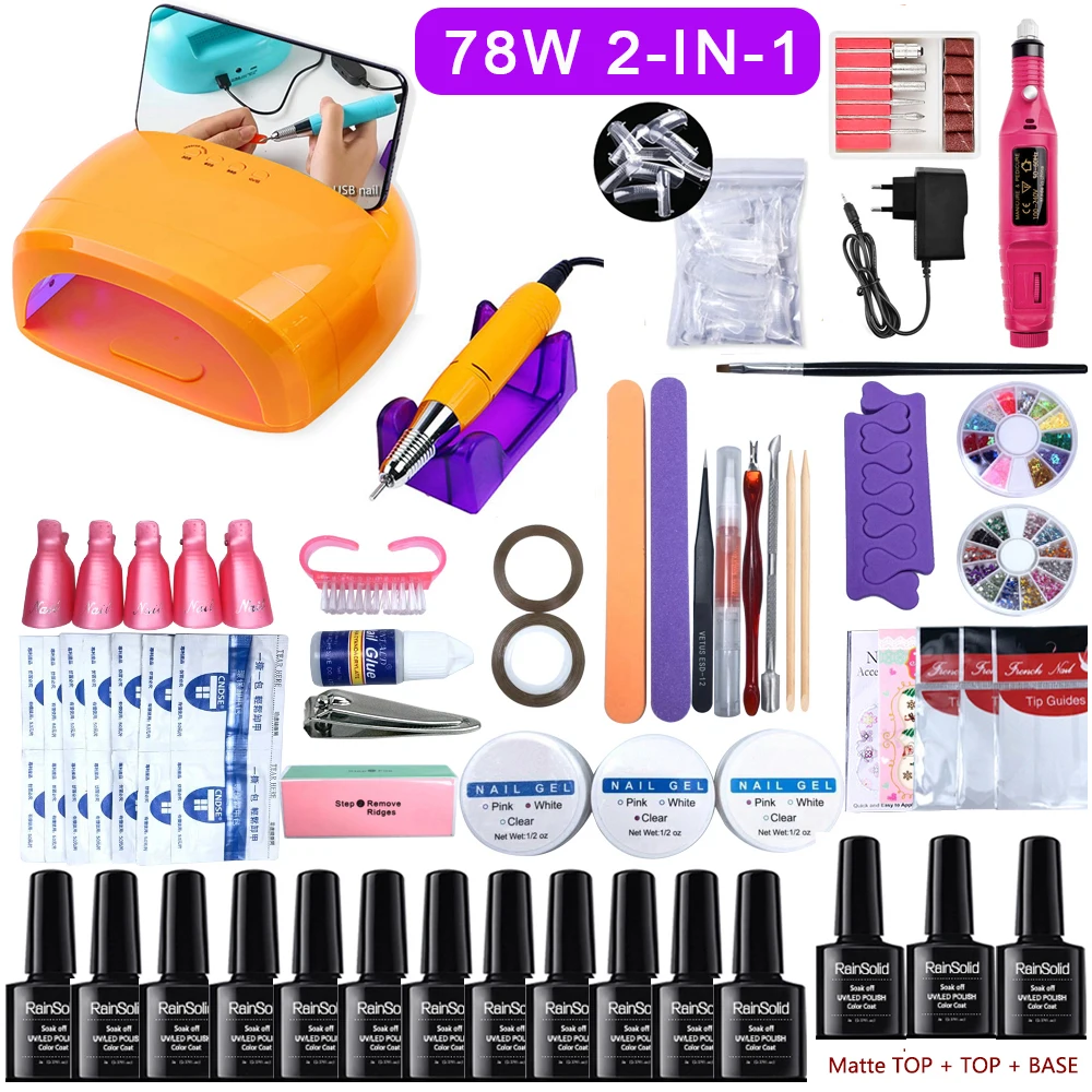 Набор ногтей с УФ светодиодная лампа для сушки ногтей для маникюра, набор гель-лаков с электрической дрелью для ногтей, профессиональные аксессуары для ногтей и инструменты