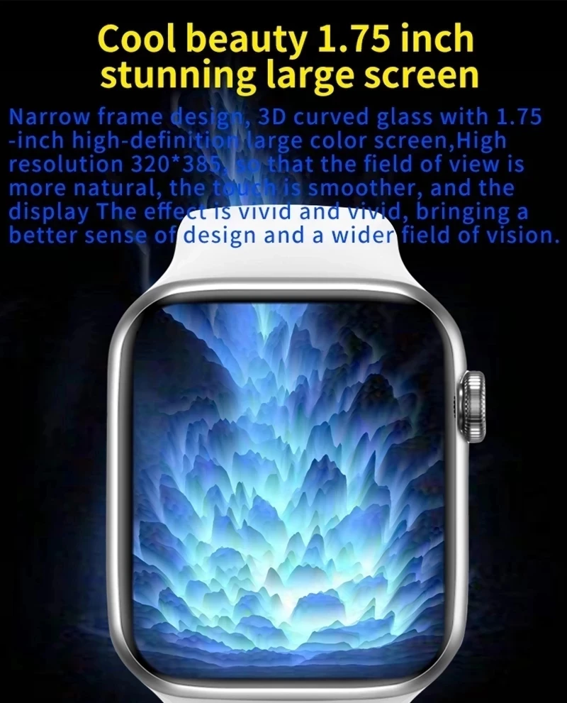 1. Процессор: MTK2502D2. Размер: 38,5*44,5*14 мм3. Материал ремешка: силикагель4. Главный экран: 1,75-дюймовым HD монитором под управлением IPS 320*385 Пиксели5.BT 3,0 4,0 Поддержка bluetooth вызова6. Режим зарядки: Магнитная Зарядка7. Сенсорный экран: Полный сенсорный экран8. Цвет: черный, серебристый, розовое золото, красный, синий9. Аккумулятор: 200 мАч10. Водонепроницаемость: IP6711. Внешний вид Материал: цинковый сплавФункция часов:Bluetooth Вызов, игра, пользовательские обои,Напоминание о питании, кислород крови, спортивный режим (открытый бег, ходьба, альпинизм, закрытый бег), Facebook, twwiter, WhatAPP, календарь,Напоминание о сообщении, Пульс, мониторинг сна, Bluetooth музыка, SMS, запись звонков, калькулятор, SIRI, будильник, удаленное фото, подсчет шагов, артериальное давление, адресная книга, ищу мобильный телефон, et
