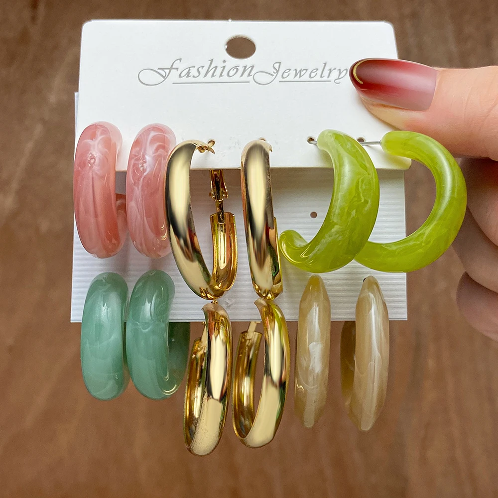 Новые корейские разноцветные акриловые винтажные геометрические C-образные серьги-кольца из смолы в стиле ретро для женщин и девочек, ювелирные украшения для вечевечерние, путешествий, подарки