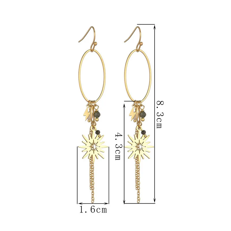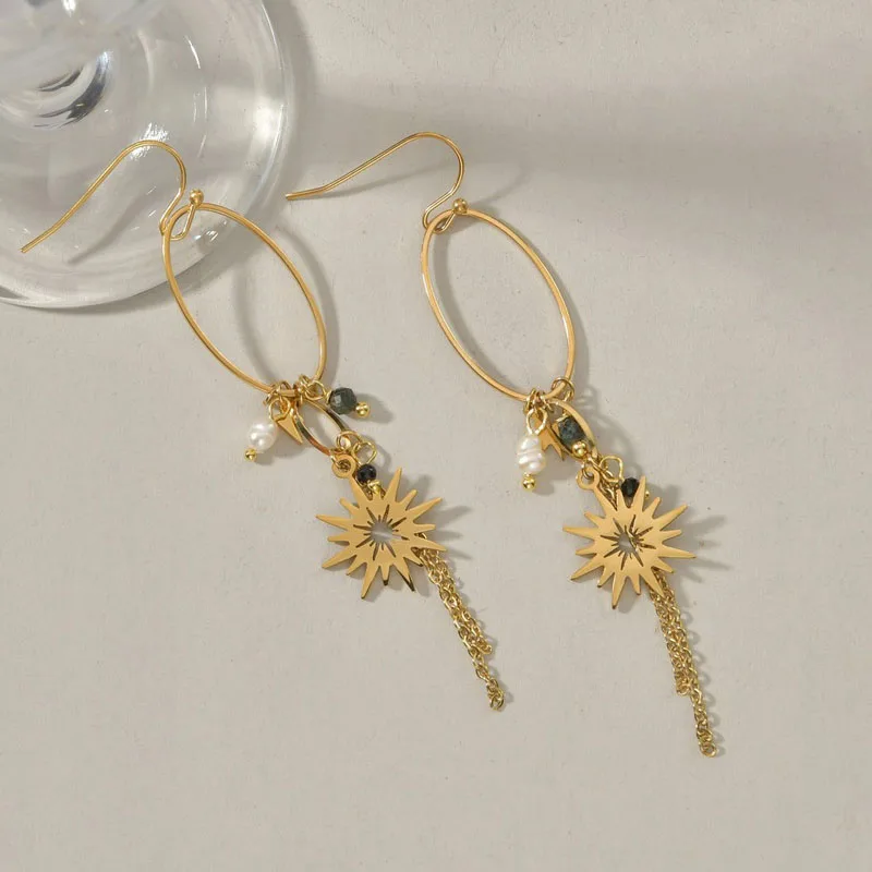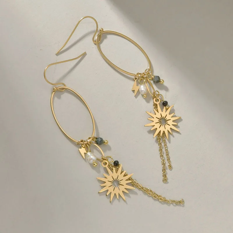 Популярные женские серьги из нержавеющей стали в европейском и американском стиле, серьги из 14-каратного золота с подсолнухом, жемчужной цепочкой и кисточкой, богемное Ювелирное Украшение для ушей