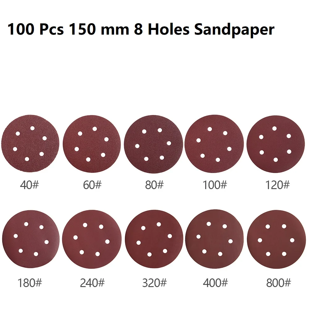 100 шт. наждачная бумага круглой формы, 125 мм, шлифовальные диски, автомобильная шлифовальная бумага с петлей и крючком, листы для полировки, наждачная бумага с 8 отверстиями, Полировочная, шлифовальная машинка Pad