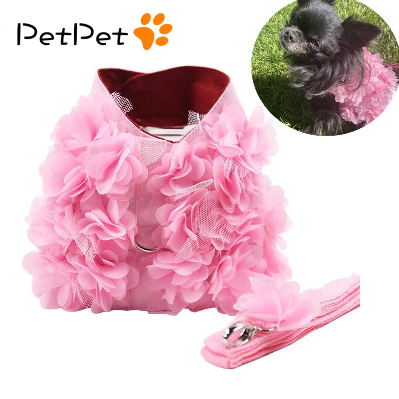 Поводок для собак с розовым цветком, милый жилет для домашних животных, нагрудный ремень для маленьких собак, кошек, поводки для чихуахуа, Тедди