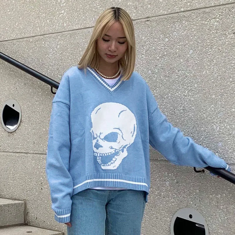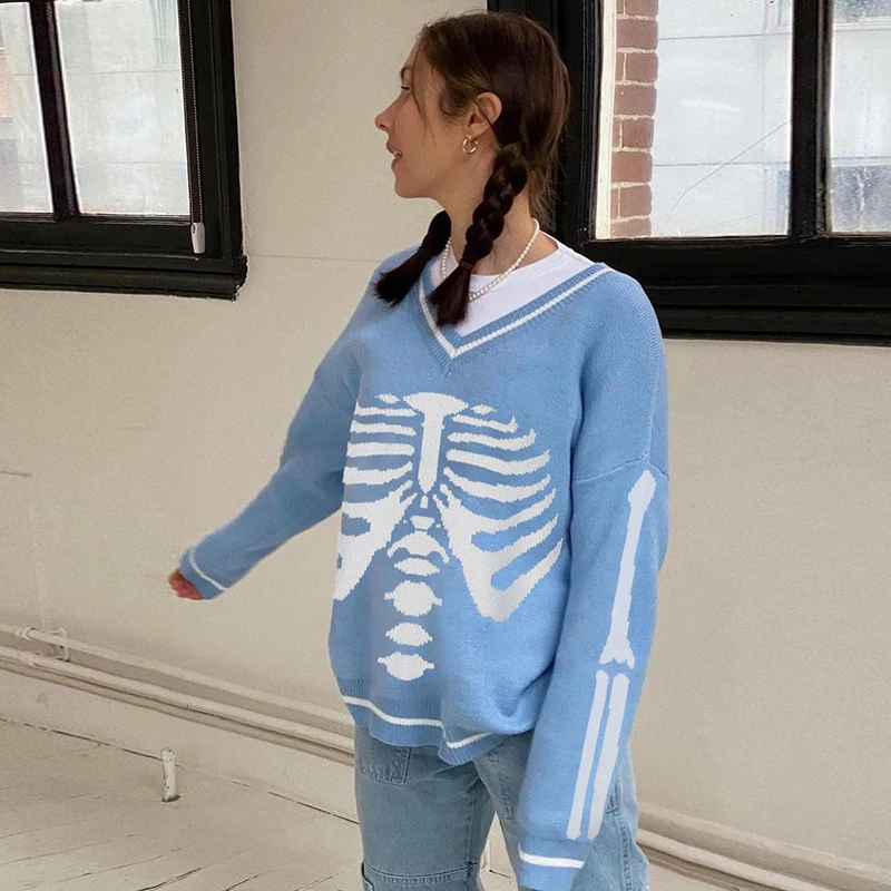 Пуловер женский трикотажный в стиле ретро с V-образным вырезом