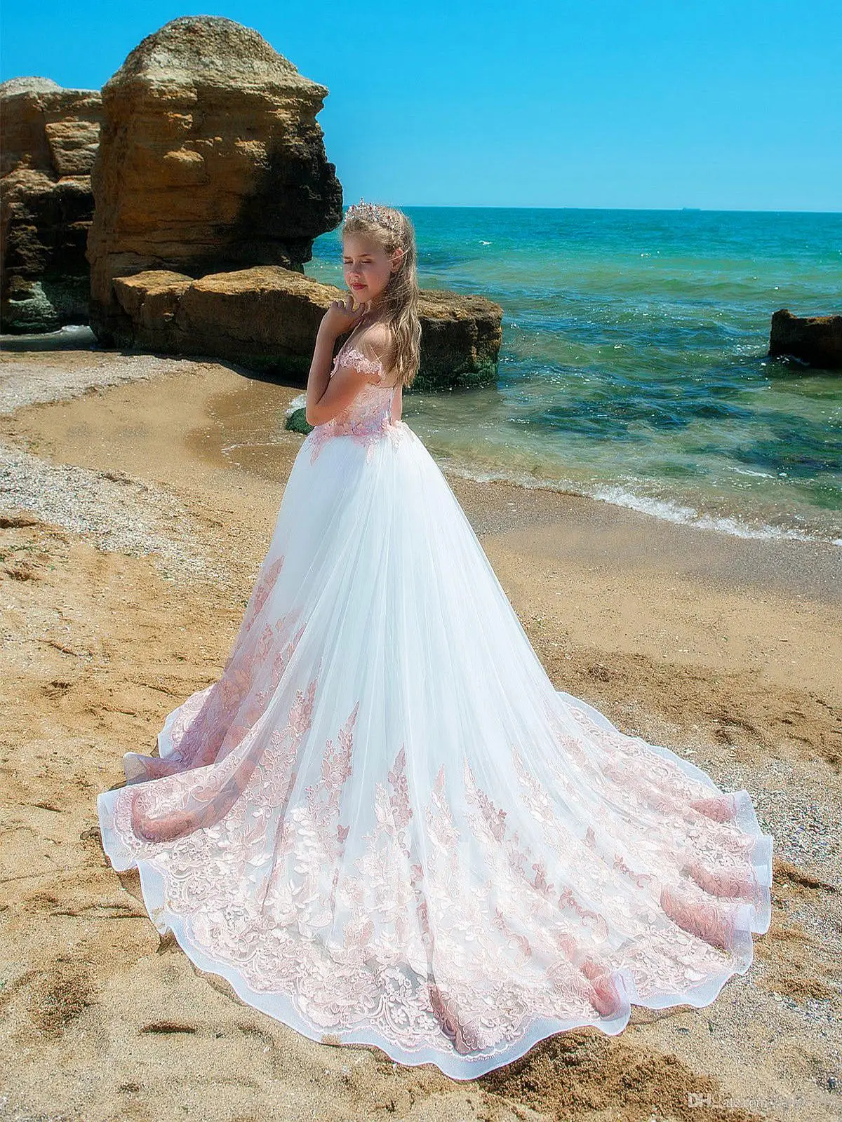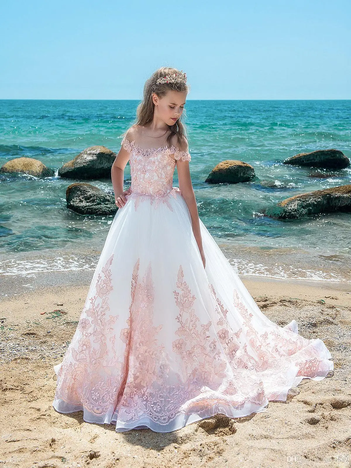 Детское Пышное Бальное Платье с цветочным рисунком, платья для девочек с пышным атласным бантом, платья принцессы, Длинные Детские платья для причастия