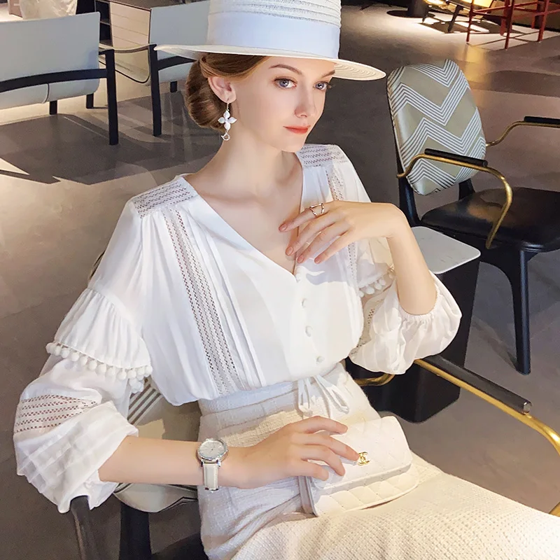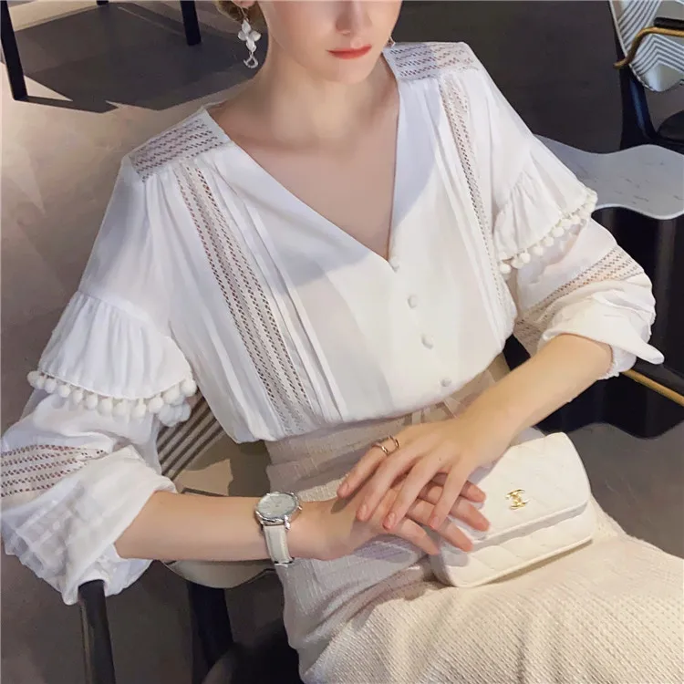 Dabuwawa элегантная однотонная Офисная Женская кружевная блузка с о...