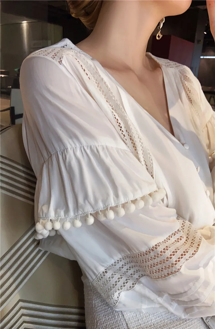 Блузка Dabuwawa Женская кружевная с открытыми плечами, хлопковая бл...