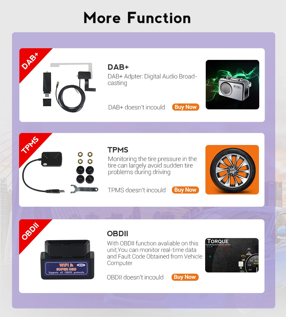 > Поддержка внешнего DAB +/tpms/obd2