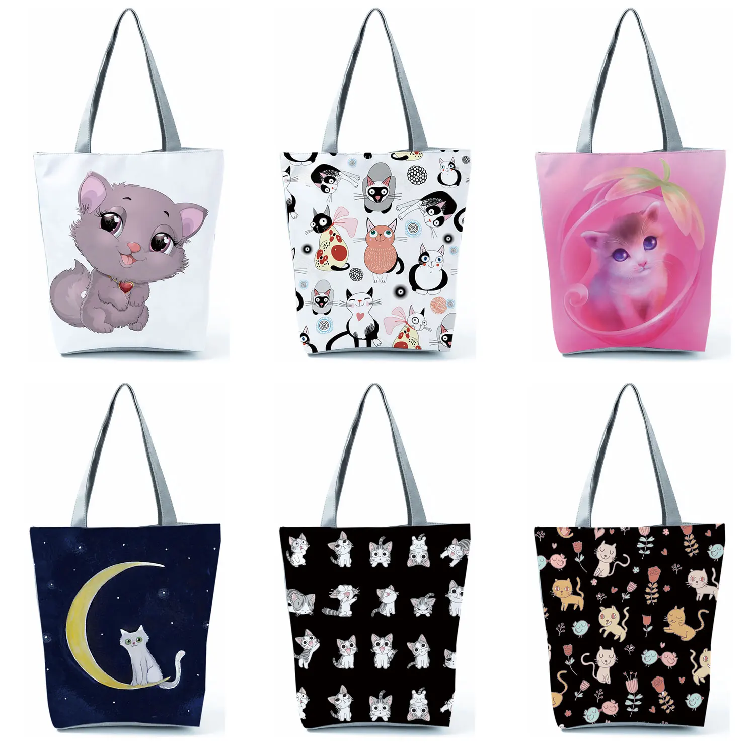 Мультяшная Милая кошка, сумки, модные, многоразовые, хозяйственные сумки, луна, животное, большая вместительность, сумка-тоут, черный, крутой стиль, женская сумка на плечо