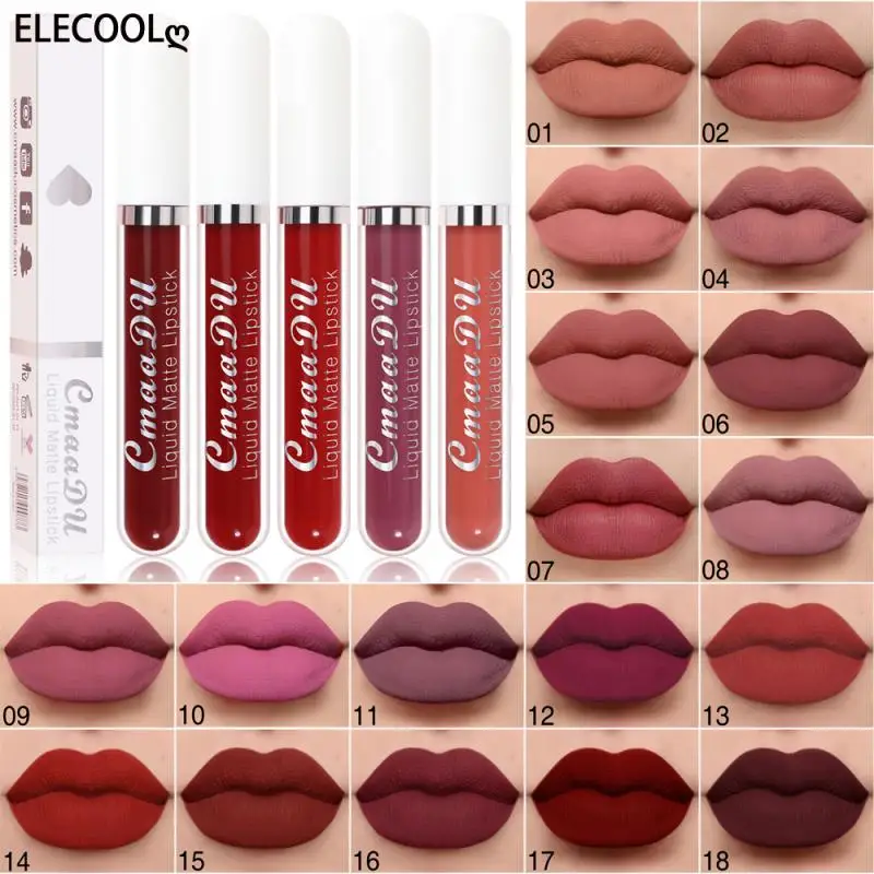 Бархатная матовая губная помада ELECOOL, 18 цветов, водостойкая стойкая Сексуальная Красная губная помада, матовая губная помада с антипригарным покрытием, Матовая жидкая губная помада