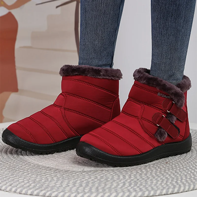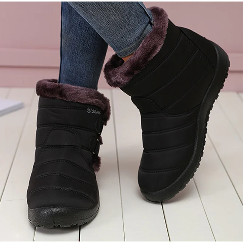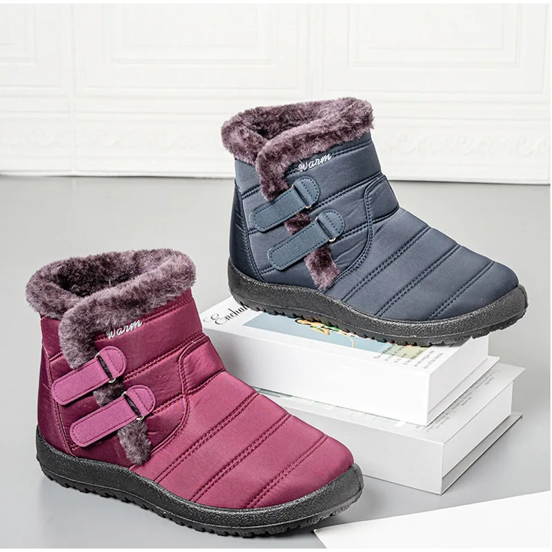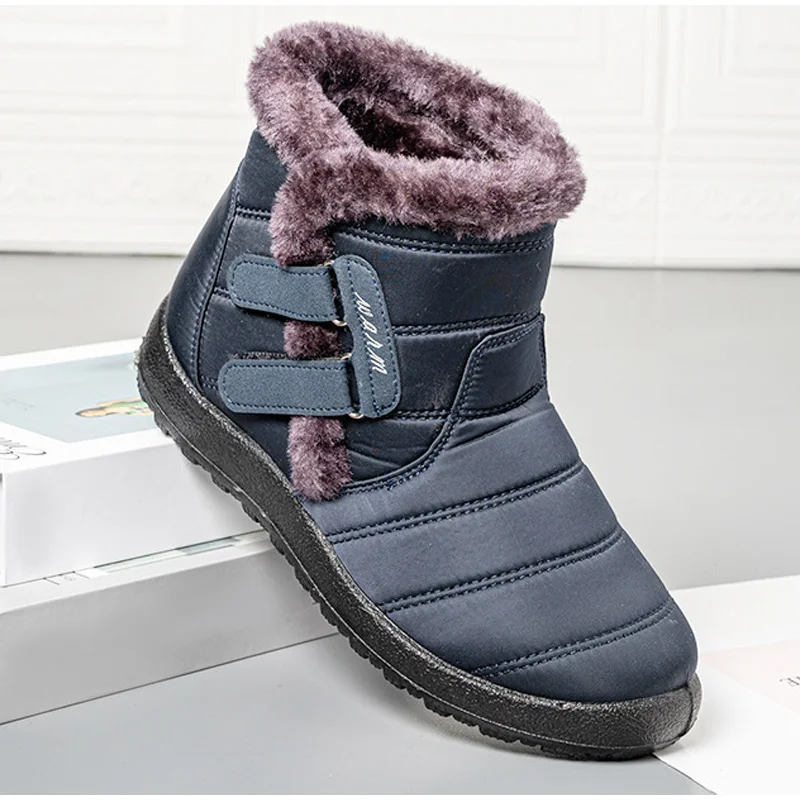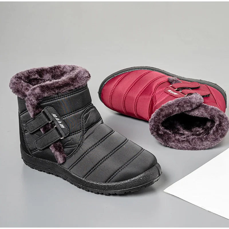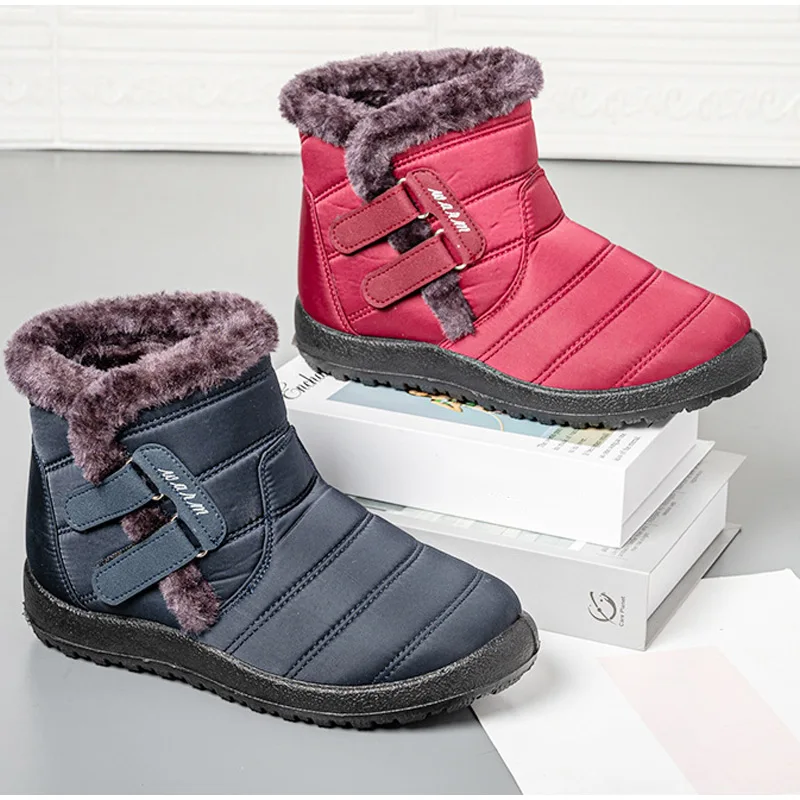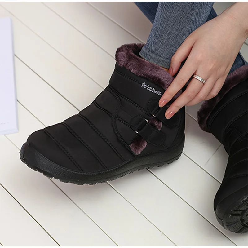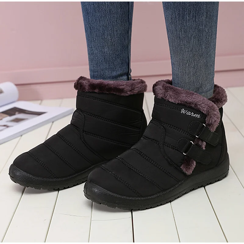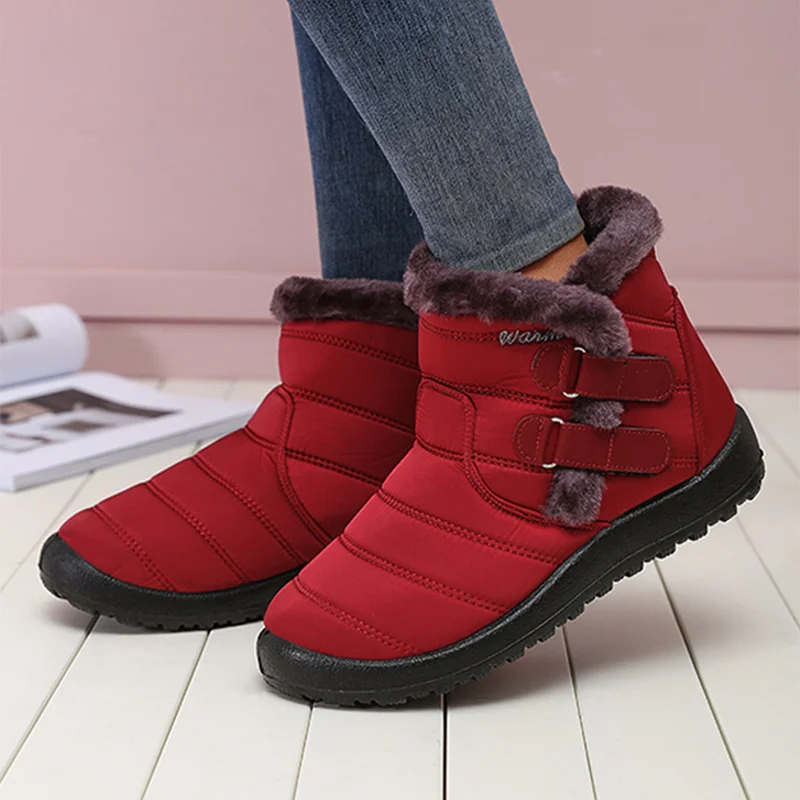 Женские зимние ботинки; Коллекция 2021 года; Нескользящие плюшевые теплые зимние ботинки; Женские однотонные полусапожки на плоской подошве с застежкой-липучкой; Женская обувь размера плюс