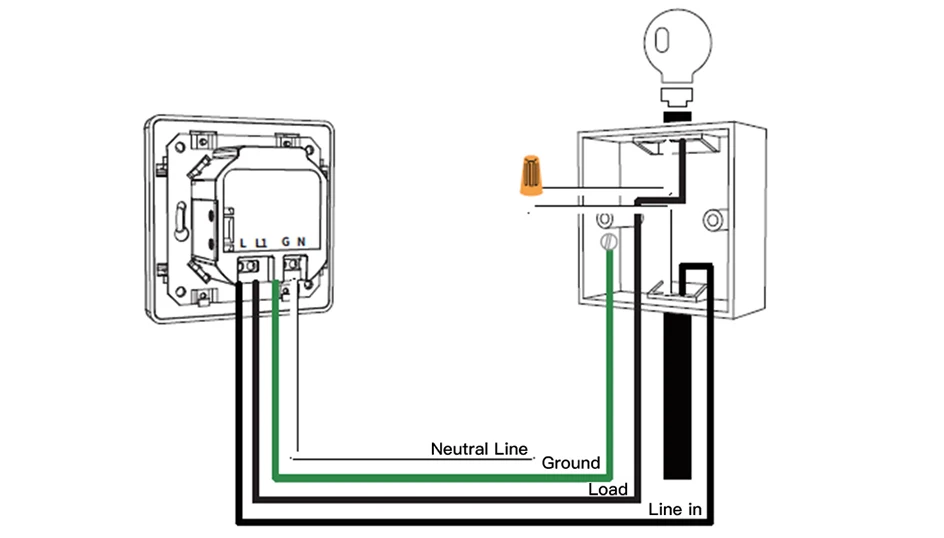 1. Отключите выключатель питания2. Проверьте линию с ручкой для проверки напряжения, убедитесь, что мощность выключена, чтобы предотвратить Электрический шок.3. Следуйте инструкциям по проводке, подключите провода диммера друг к другу и проверьте наличие коротких замыканий4. Ввинтите диммер в заднюю коробку5. Монтажный переключатель крышки пластины6. Подключите выключатель для восстановления мощности