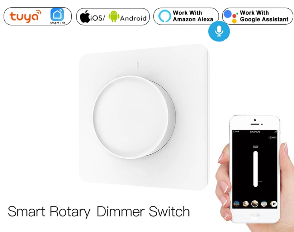 Умный поворотный регулятор яркости ZigBee, wi-fi переключатель с дистанционным управлением, работает с Alexa Google EU