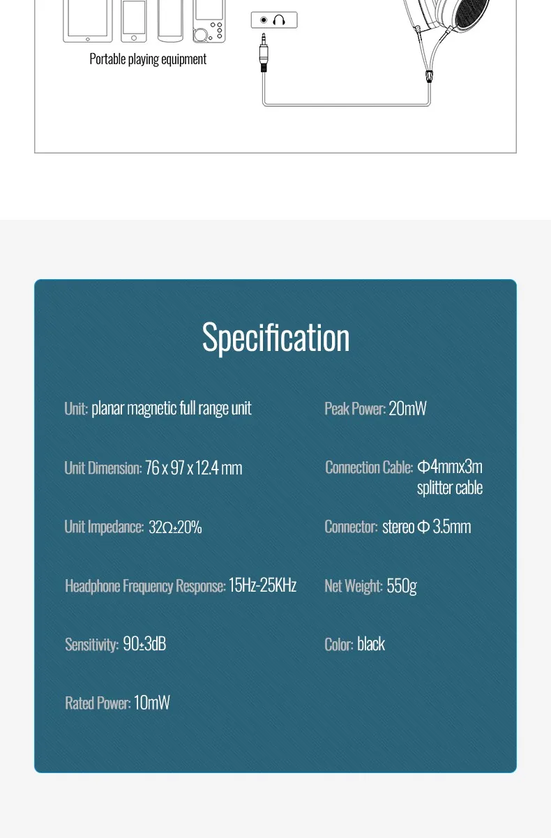 • Большой плоский магнитный блок драйвера, высокопроизводительный магнит NdFeBmagnet, высокая чувствительность, широкий частотный отклик и динамический