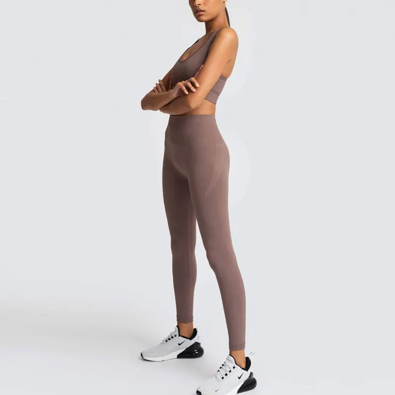 Бесшовный трикотажный комплект для занятий спортом и фитнесом, костюм с жилетом, спортивный бюстгальтер, спортивный комплект для женщин, спортивная одежда для фитнеса, Комплект колготок, спортивный костюм