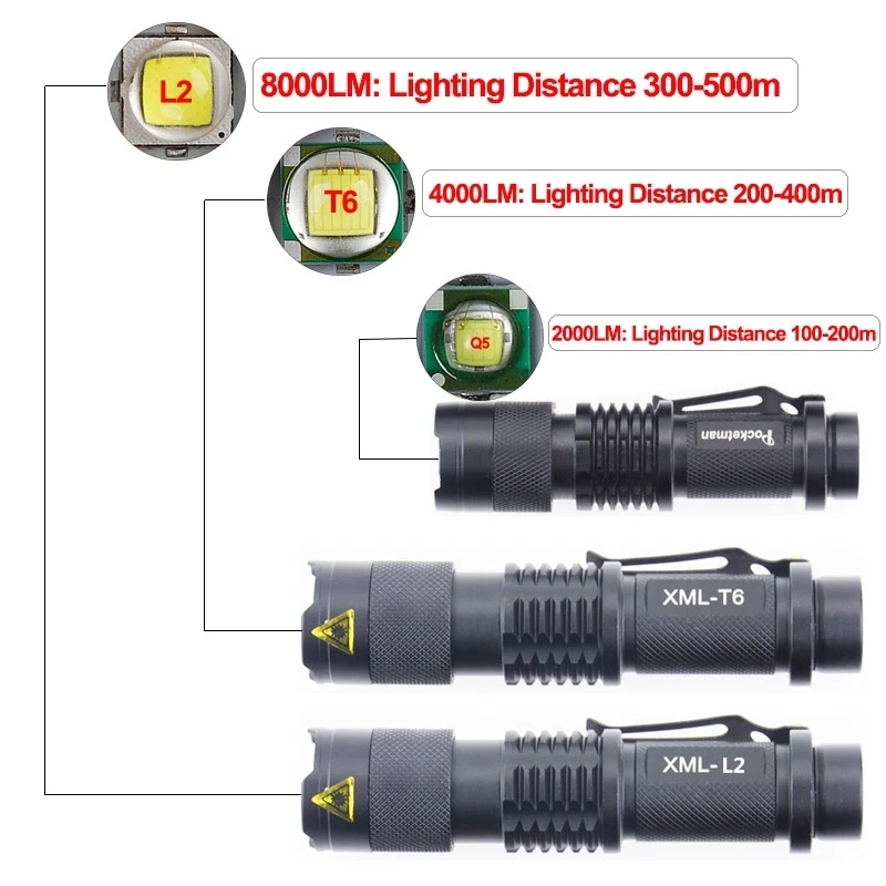 8000лм мини светодиодный светильник-вспышка портативный супер яркий фонарь Q5/T6/L2 фонарь 3 режима масштабируемый фонарь светильник с батареей 14500/18650