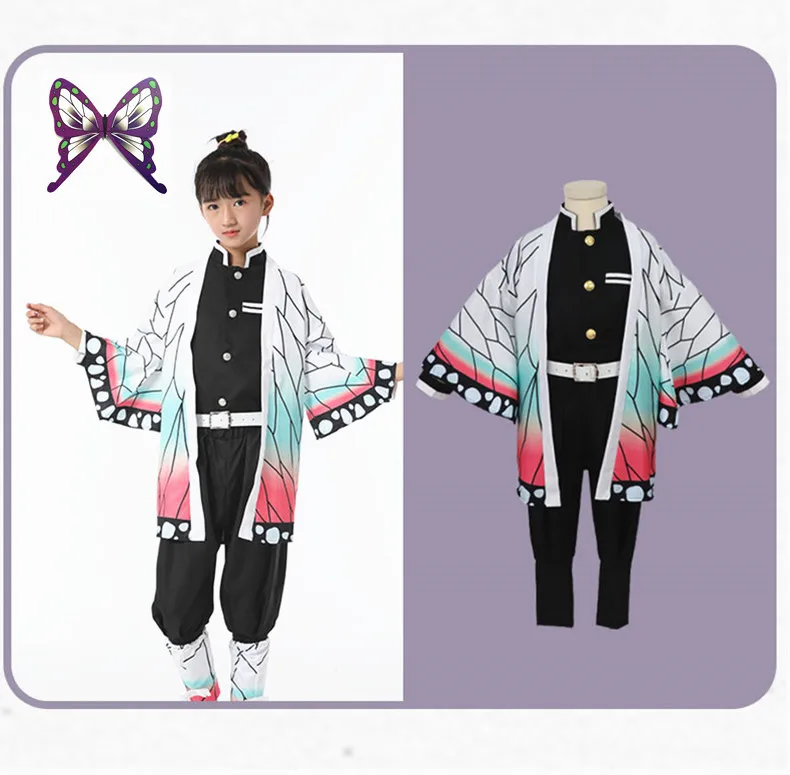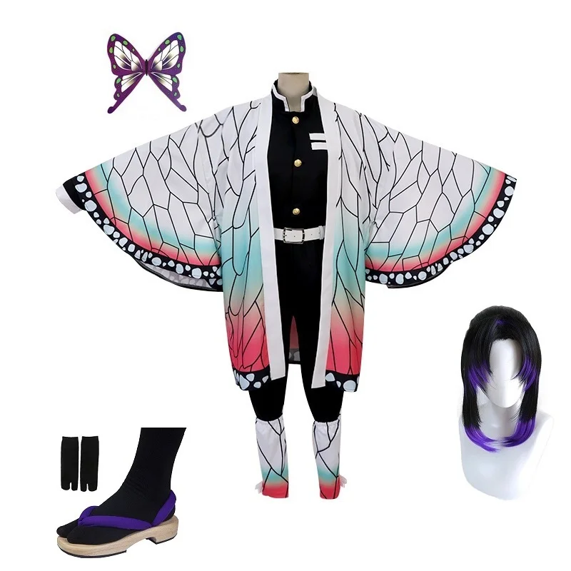 Кимоно женское для косплея, костюм для косплея шинобу, Униформа, парик, обувь, Шпилька-бабочка, для взрослых и детей