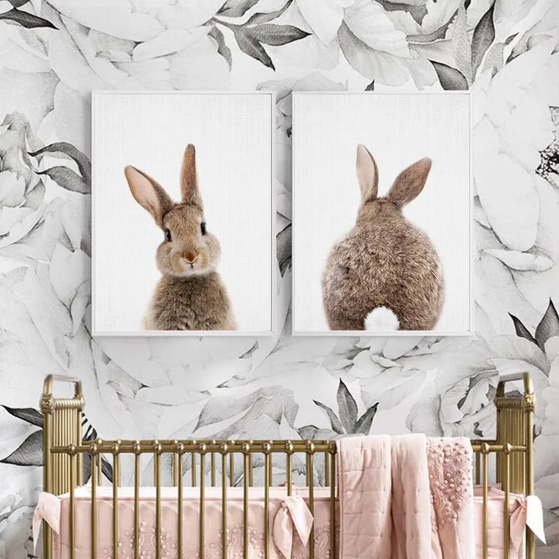 Картина на холсте с изображением кролика и хвоста леса постеры с животными и принты Детские минималистичные картины для декора гостиной без рамки