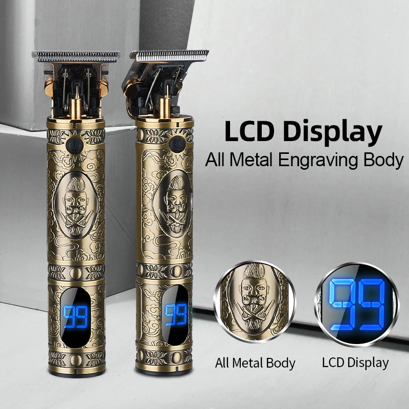 Мужская электрическая машинка для стрижки волос, беспроводной профессиональный триммер со светодиодным дисплеем, для бороды