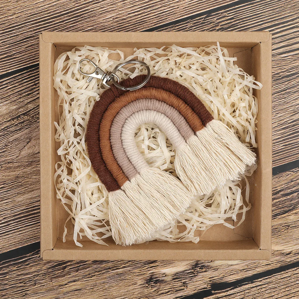 Плетеные радужные Брелки для женщин ручной работы в стиле бохо, брелок для ключей, макраме, сумка для автомобиля, Висячие ювелирные изделия, подарки