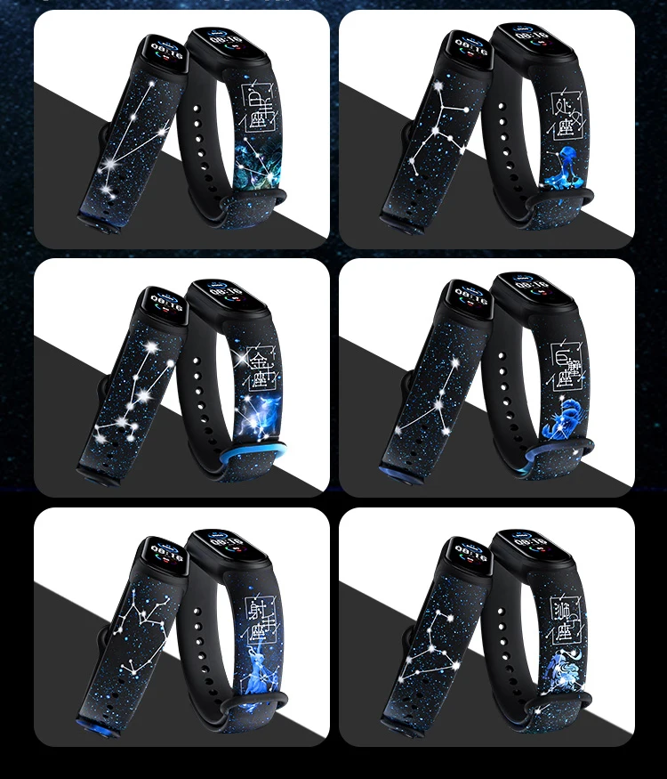 Для Xiaomi Mi Band 6 5 силиконовый ремешок 12 созвездий Mi Band 5 с...