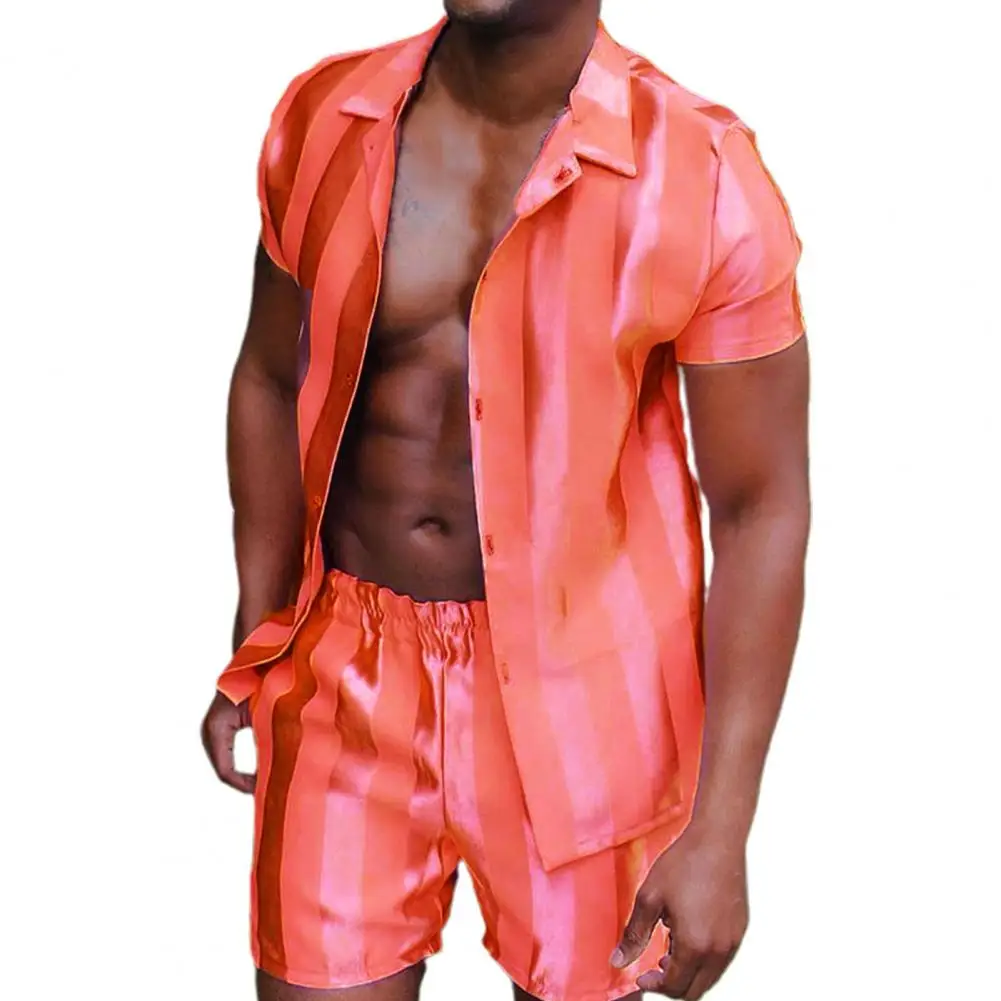 Мужской летний костюм, полосатые топы с широким подолом, короткие штаны, мужской спортивный костюм, лето размера плюс, Мужской пляжный костюм