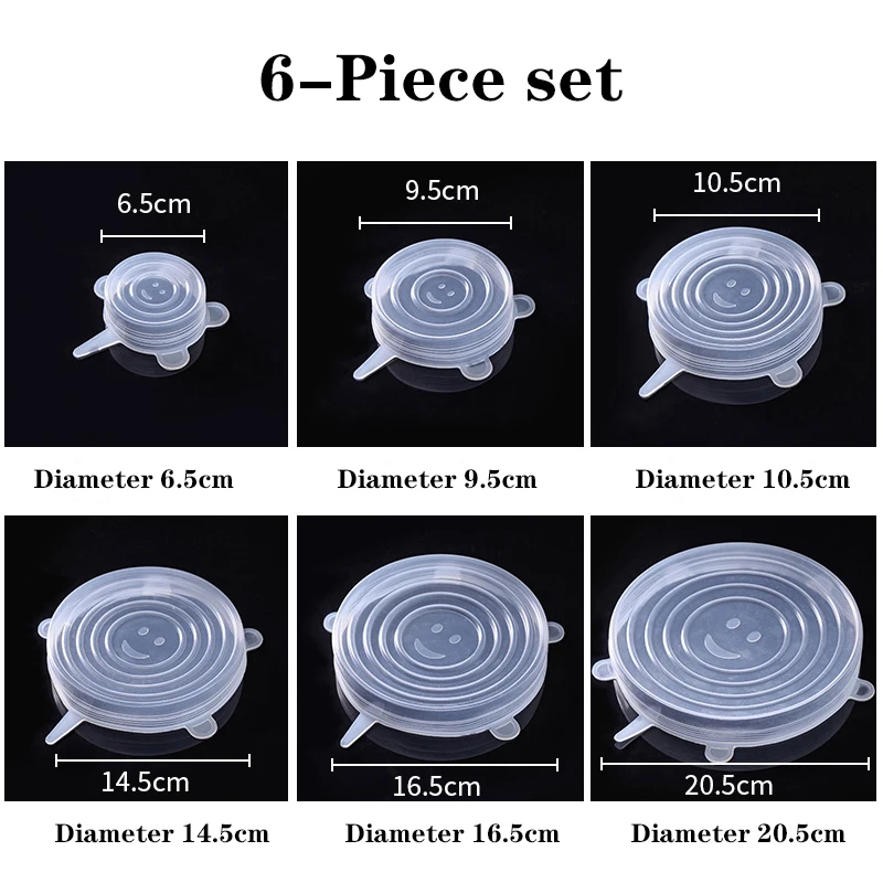 1,6 pcs/套硅胶厨房盖.它可以拉伸成各种不同的尺寸.