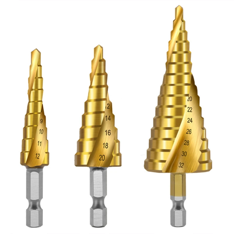 1Hss Spiral Step Cone Taper Drill Bit Hole Cutter Metal Hex Drill Bits