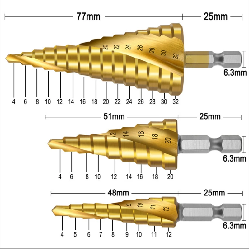 4Stepped Drill Bits 1/4 Hex Drill Bit Wood Metal Drilling Tool