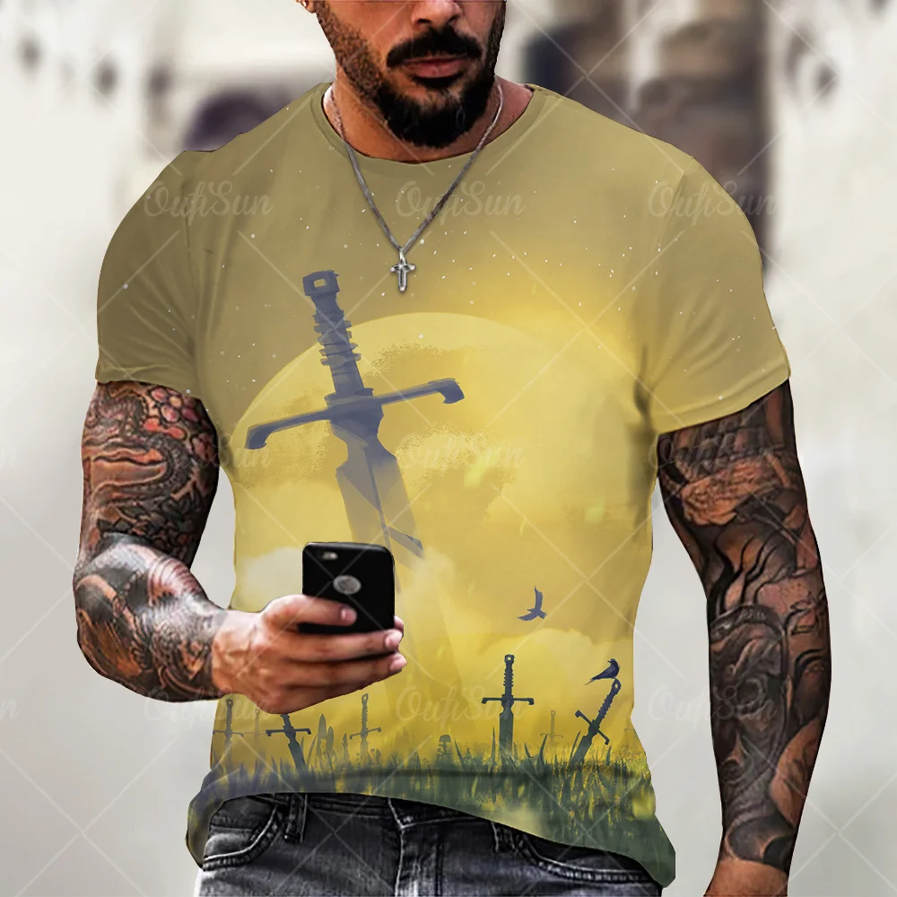 Футболка мужская с коротким рукавом, модный топ в уличном стиле, футболка с 3D-принтом крестовика, спортивная одежда для фитнеса