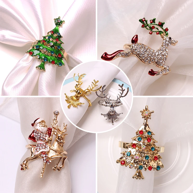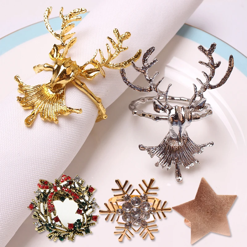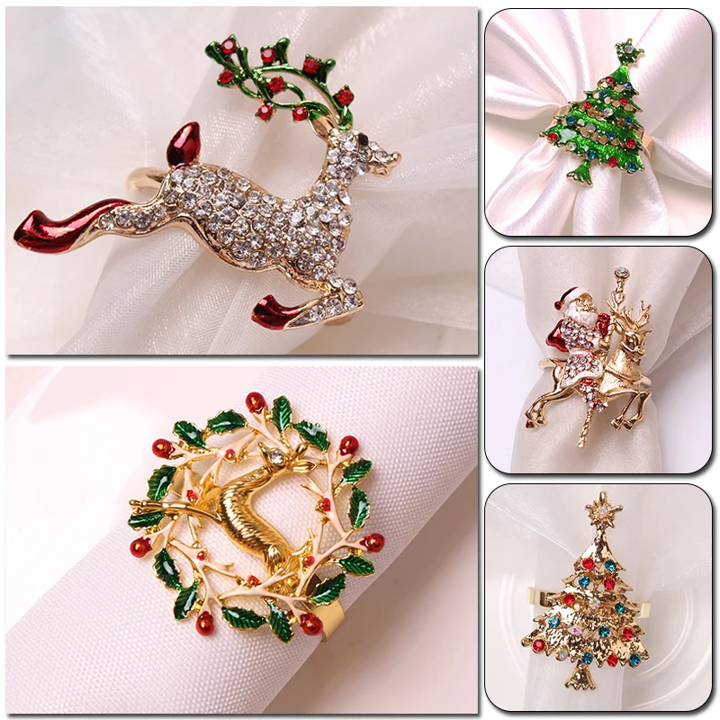 Новая Металлическая Рождественская елка, салфетка из сплава, цветочный венок, кольца, бант, круг, свадебный банкет, гостиница, домашний стол, Рождественский Декор