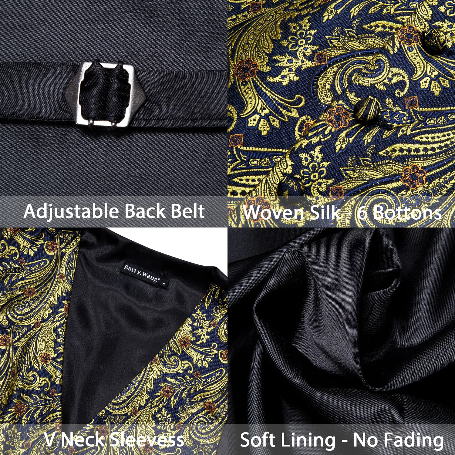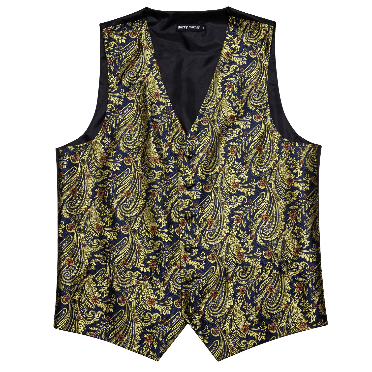 Мужской костюм Barry.Wang, 8 цветов, жилет золотого цвета с узором пейсли, Шелковый жилет с v-образным вырезом и галстуком, строгий M-2047 для отдыха