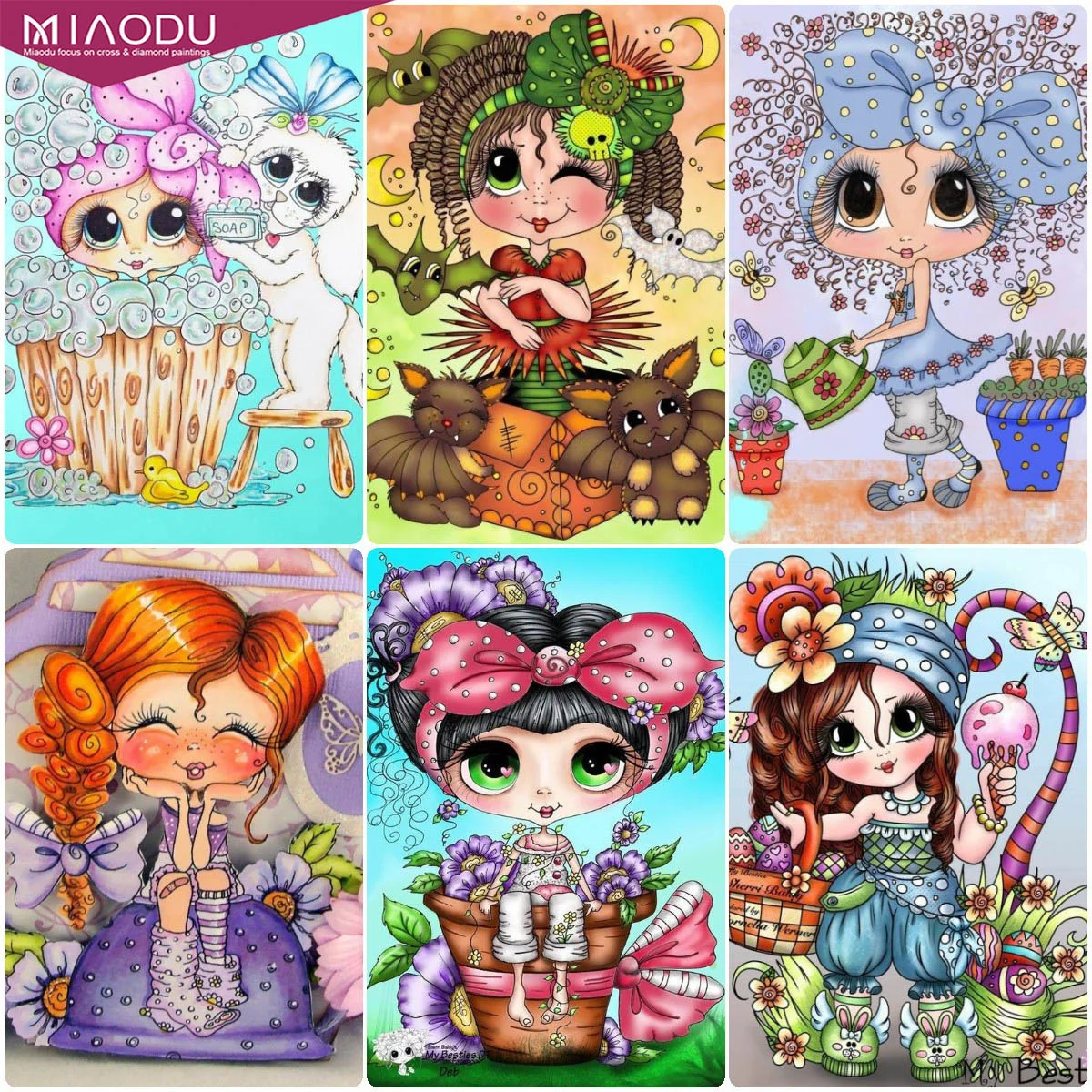 5D алмазная живопись, Мультяшные большие глаза, маленькая девочка Devi, Набор для вышивки крестиком, абстрактная полноформатная Мозаика из смолы, домашний декор