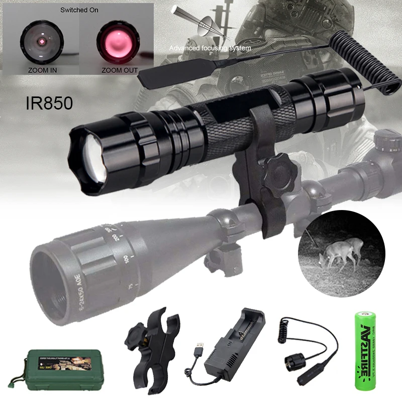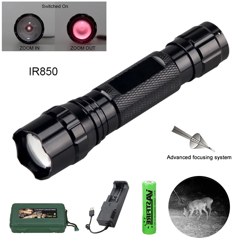 Масштабируемый фокус 850 нм светодиодный инфракрасный Излучение ИК лампа ночного видения фонарик фонарь: