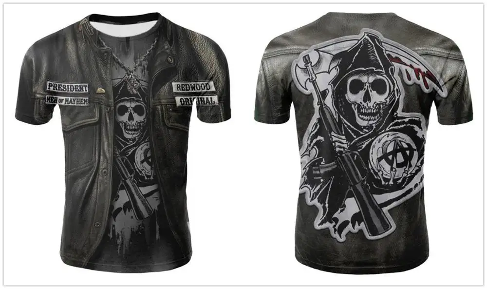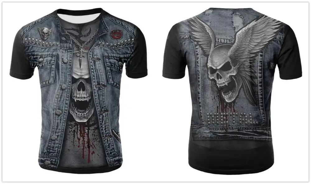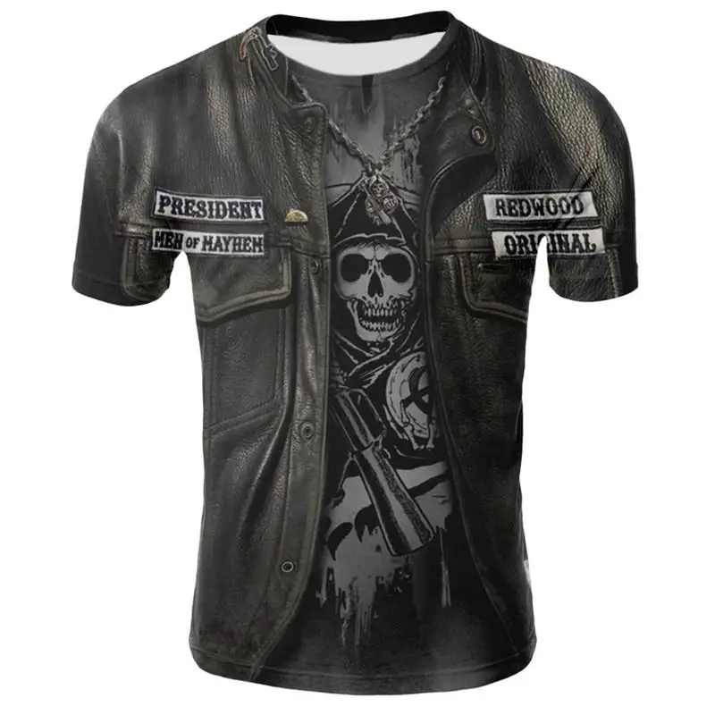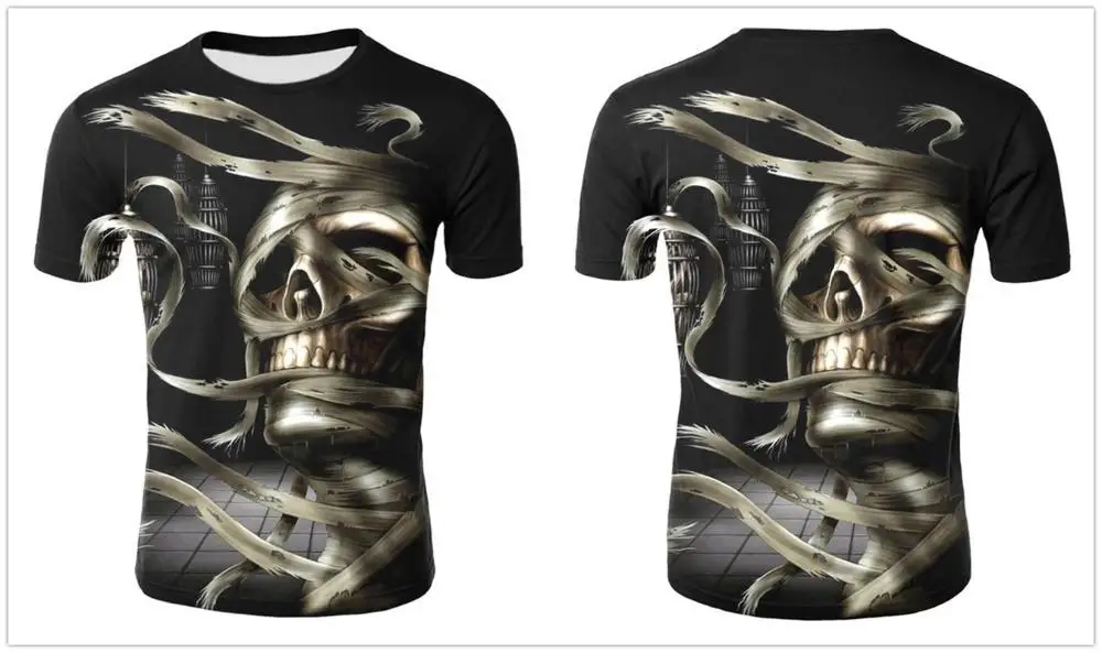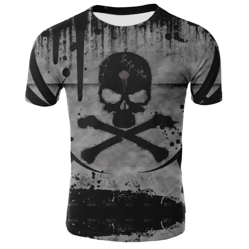 Футболка мужская с 3D-принтом черепа, тенниска в стиле панк, майка со скелетом, винтажная Готическая рубашка, повседневный Топ, лето